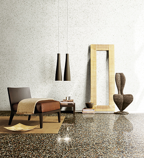 Aktuell zieren geometrische Muster und filigrane florale Designs die Wände von Küchenzeilen und Duschen. Zudem verleihen metallic-schimmernde Bodenplatten Wohnräumen einen stylishen Charakter, und grossformatige Fliesen mit samtiger Zement-Optik ziehen alle Blicke auf sich. Als neuer Trend im Inneneinrichtungsbereich zeichnen sich zudem Terrazzo-Böden ab, adaptiert auf keramische Fliesen. Ausserdem integrieren die meisten neuen Kollektionen einfarbige und dazu passende, stark oder dezent gemusterte Fliesen.