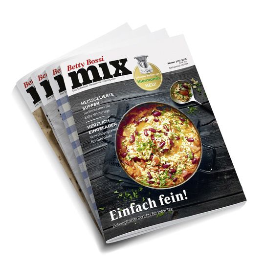 Und bald kocht die einzigartige Küchenmaschine auch nach den beliebten Rezepten von Betty Bossi: «Betty Bossi mix» heisst das neue Magazin mit Rezepten speziell für den Thermomix. Am 4. Dezember erscheint das erste Heft mit 40 Rezepten. Vier Ausgaben pro Jahr sind geplant.