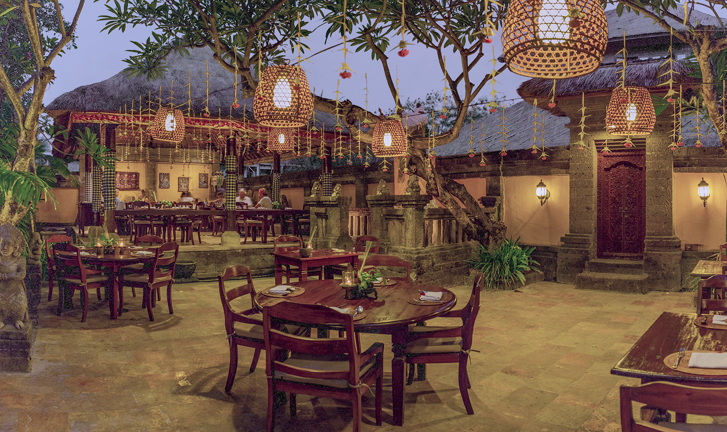 Selamat Malam» erklingt es einstimmig aus der offenen Küche, wenn ein neuer Gast das Restaurant betritt – «Guten Abend». Im «Bumbu Bali» soll man sich für einen Abend wie bei einer typisch balinesischen Familie wie zu Hause fühlen. Strohbedeckte Dächer, Steinfiguren und Holzpavillons wie in einem traditionellen Haus gehören zum Konzept. Und natürlich die authentische Küche von «Mama Bali». Ente im Bananenblatt, Schwein in süsser Sojasauce oder Gemüse in Erdnusssauce – alles wird mit der speziellen Gewürzmischung «Bumbu» zubereitet. Ingwer, Kurkuma, Krabbenpaste, Zitronengras, Koriander, Chili, Galgant und einige andere sind der Grundstein der inseltypischen Köstlichkeiten. Und natürlich Reis, das Grundnahrungsmittel der Region. «Die Küche hier hat so viel zu bieten. Das Essen ist ein einzigartiges Erlebnis. Alle Gewürze sind frisch und ergeben die vielfältigsten Geschmäcke», sagt Koch Heinz von Holzen, der nun seit mittlerweile 26 Jahren auf der Insel lebt, und zwei Restaurants und eine Kochschule besitzt.