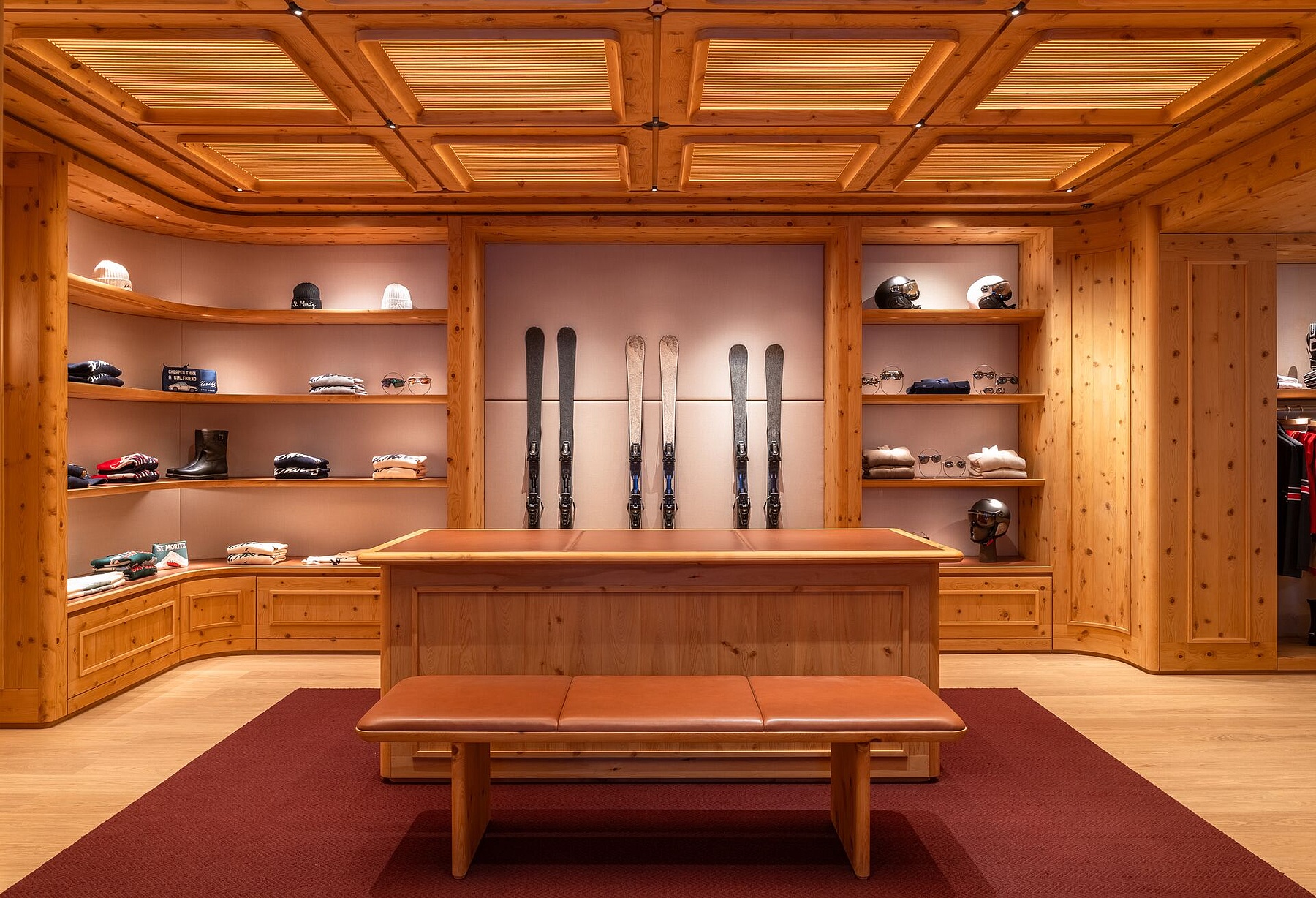 Ein Skiraum muss nicht grau und kalt sein, zeigt das Kulm Hotel in St.Moritz mit seiner Alpine Sports Lounge & Boutique.