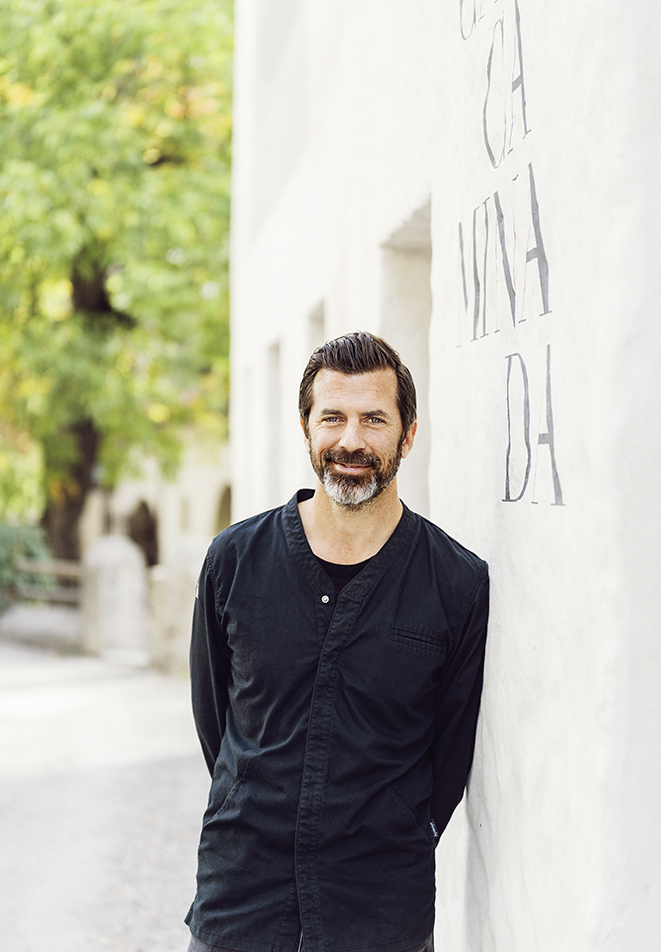 En 2017, nous avons eu l’occasion de racheter la maison privée en face du château, sur laquelle nous lorgnions depuis six ans et d’y aménager six chambres supplémentaires. Elles s’ajoutent aux trois chambres que nous avions déjà, mais la Casa Caminada est plutôt un Guest House, une simple pension. Je ne voulais pas d’un boutique-hôtel, mais au contraire un bâtiment qui s’intègre dans le paysage, qui s’inscrive naturellement dans le décor et l’architecture locaux. L’architecte, Gion Caminada, est aussi mon cousin: l’ancrage régional est très important pour moi, qu’il s’agisse des produits, des matériaux ou des gens.