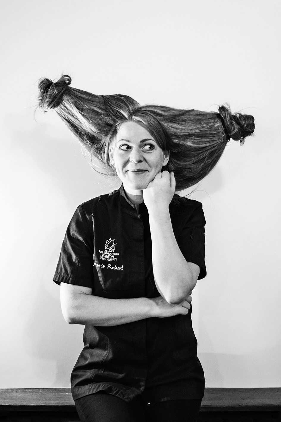 On l’a vue récemment cuisiner un menu chic à quatre mains avec Dominique Gauthier dans les cuisines du Chat-Botté, à Beau-Rivage, à Genève. Ou œuvrer en compagnie de Sang Hoon Degeimbre, le formidable chef wallon doublement étoilé de Liernu (L’Air du Temps) dans le cadre d’un dîner de gala au Château d’Aigle. On l’a aussi aperçue ici et là dans des soirées organisées par les Jeunes Restaurateurs d’Europe. Surtout, elle est omniprésente ces jours, à l’affiche des magazines et aux devantures des kiosques, visage botticellien sous une chevelure blond vénitien en cascade, contrastant avec la sévérité de l’uniforme noir à son nom. Marie Robert est la Cuisinière de l’année du guide Gault & Millau, succédant à un casting plutôt chic: d’Irma Dütsch à Virginie Basselot, en passant par Judith Baumann et Tanja Grandits.
