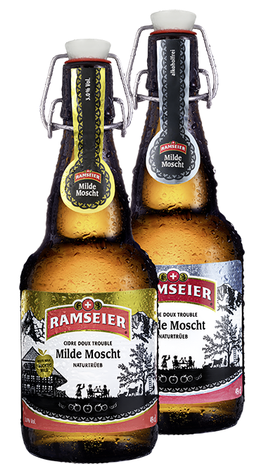 Möglichst naturbelassene Produkte liegen im Trend. Das gilt auch für die Süssmoste und naturtrüben Apfelwein-Produkte von Ramseier. Alle erfreuen sich grosser Beliebtheit. Seit der Geburtsstunde 1910 in Ramsei/BE verarbeitet Ramseier ausschliesslich Schweizer Mostobst. Der neue Ramseier Milde Moscht wird mit Apfelsaft aus rund 30 verschiedenen hiesigen Apfelsorten hergestellt. «Sonnengereifte Schweizer Äpfel verleihen dem Apfelwein einen besonders fruchtig-milden Geschmack», sagt Christoph Richli, CEO der Ramseier Suisse AG. Die Rezeptur für den Milde Moscht basiert auf Apfelwein, der mit Apfelsaft verfeinert wird. Das neue Obstsaftgetränk gibt es mit und ohne Alkohol. Der Milde Moscht ist erfrischend im Geschmack und löscht den Durst auf natürliche Art. Erhältlich ist Ramseier Milde Moscht in der traditionellen 49-cl-Glas-Bügelflasche.