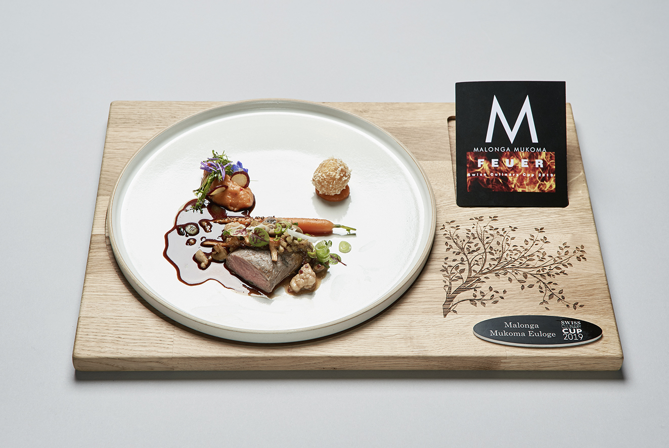 Zweieinhalb Stunden hatten die Finalisten des diesjährigen Swiss Culinary Cups Zeit, zwei Gerichte zum Thema Feuer zu kreieren. Unter vielen zündenden Ideen stach jene des Mukoma Euloge Malonga heraus. Der 35-Jährige holte sich den Titel.