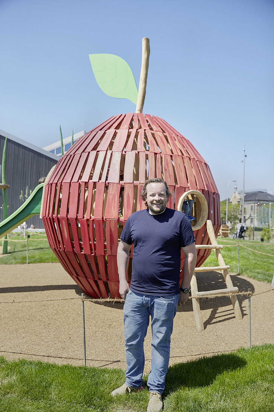 Der Obstgarten ist nicht nur für Wildbienen ein Paradies. Lauschige Nischen laden zum Verweilen ein, und für Kinder steht ein Klettergerüst in der Form eines Apfels bereit. Angst, von einer Biene gestochen zu werden, braucht niemand zu haben. Denn Wildbienen stechen nicht.
