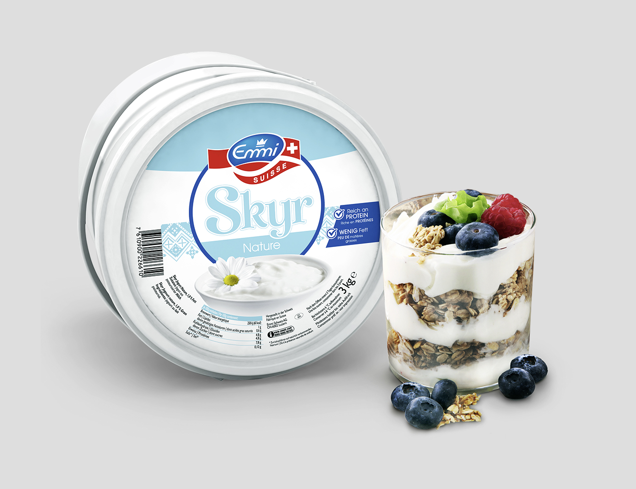 Dann wurde das fettarme und proteinreiche Milchprodukt auch in der Schweiz entdeckt. Das neue Skyr aus der Schweiz von Emmi deckt die Bedürfnisse Ihrer Gäste und bedient ein Segment mit wachsender Bedeutung. Das aussergewöhnliche Trendprodukt ist neu im praktischen Drei-Kilo-Kessel erhältlich und überzeugt durch Vielseitigkeit. Beispielsweise pur fürs Frühstücksbuffet zu frischen Früchten, als Smoothie oder cremiges Dessert. To-Go-Kreationen mit Skyr sind ein beliebter Snack. Innovative Gastgeber begeistern ihre Gäste mit einer Auswahl an erfrischenden sowie pikanten Kreationen und profitieren von der kostenlosen Verkaufsunterstützung.