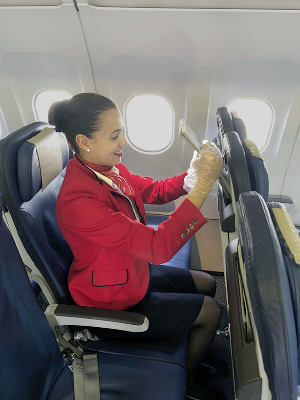 Eine Flugzeugkabine, zwischen sechs und zwölf Reinigungsmitarbeitende und 50 Minuten Zeit. Da muss jeder Handgriff sitzen.