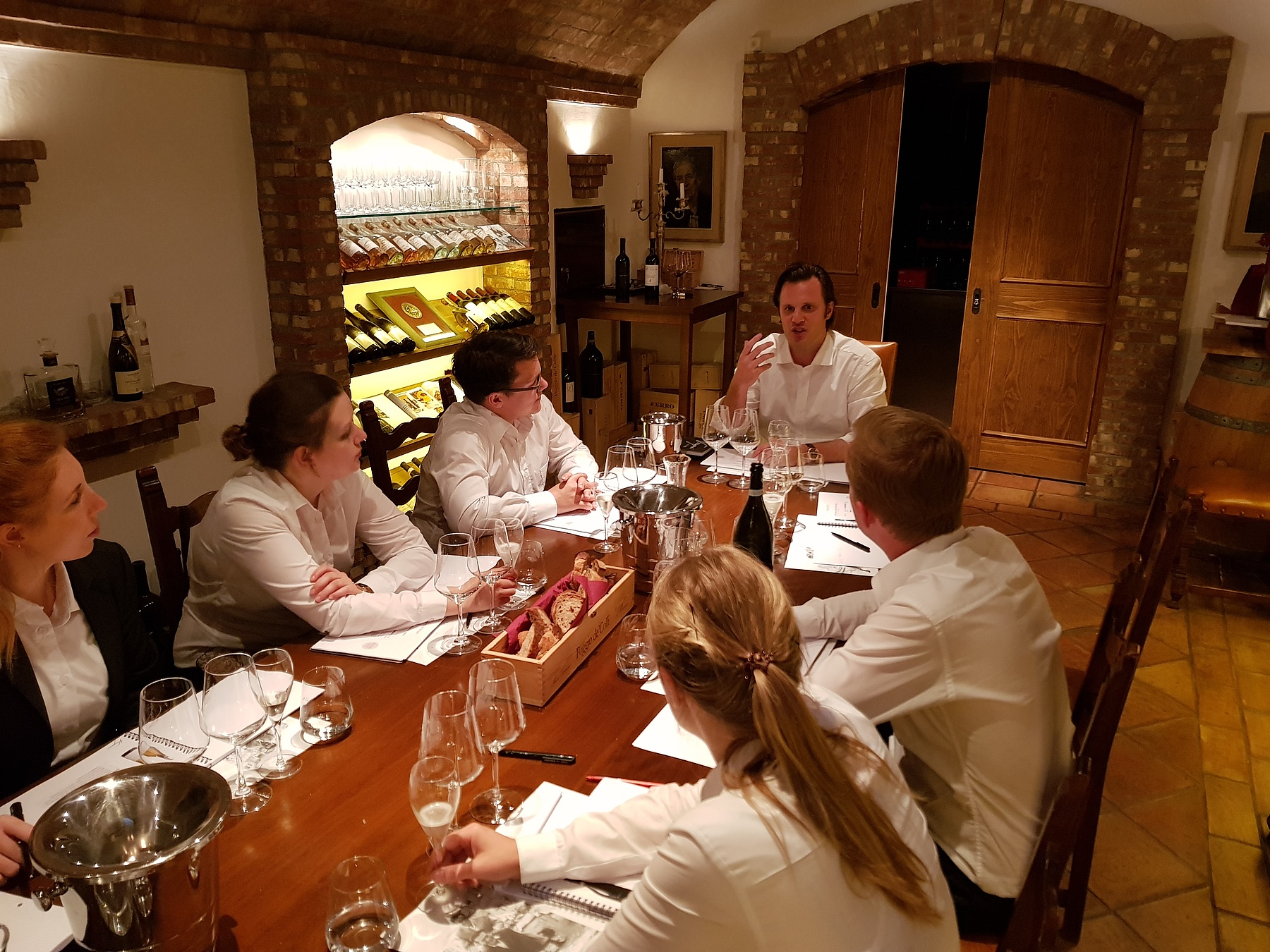 Allen wird rasch klar: Hier wird Wein nicht nur gelehrt und verkauft, sondern gelebt. «Sangiovese ist die wichtigste Rebsorte Italiens. Ragazzi, das müsst ihr wissen!», hält Reto Vergani mit lauter Stimme fest. Der Theorieteil ist gespickt mit persönlichen Anekdoten und vielen Tipps für die Junggastronomen.