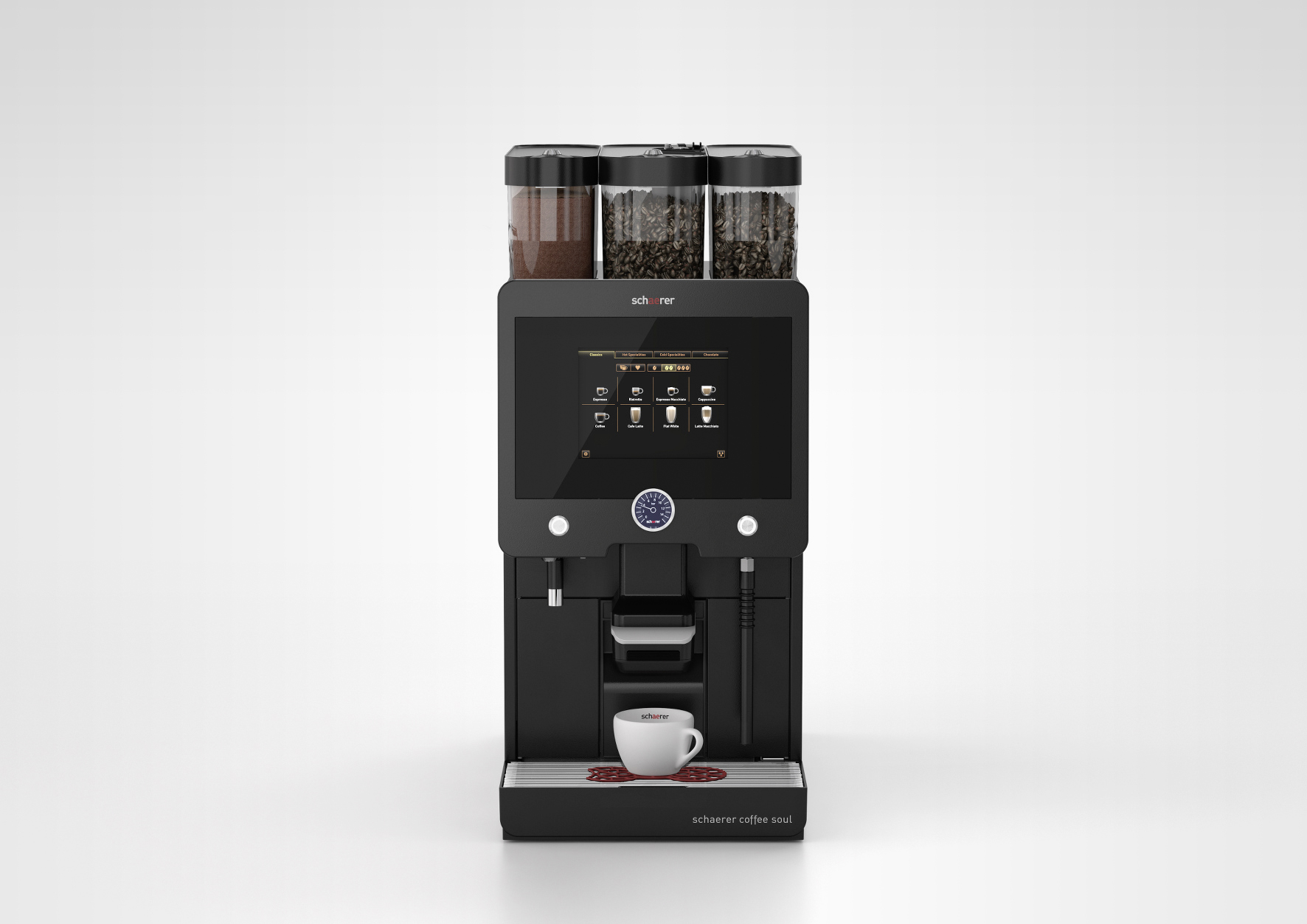 Darüber hinaus wurde die Coffee Soul mit Toppingbehältern mit zwei Kilogramm Fassungsvermögen ausgestattet. Dank dieser Erweiterungen beträgt die empfohlene Leistung bis zu 250 Tassen pro Tag. Das optional integrierte Milchsystem Best Foam erlaubt die Zubereitung von kaltem und heissem Milchschaum auf BaristaNiveau und steht damit für höchste Qualität sowie Getränkevielfalt. Für die Echtzeit-Auswertung der Daten sowie den standortunabhängigen Zugriff auf die Kaffeemaschine kann das schaerereigene TelemetrieSystem M2M Coffee Link optional gewählt werden. Diese Funktionen machen die Coffee Soul zur idealen Kaffeemaschine für den Einsatz beispielsweise in Bäckereien oder Quick-Serve-Restaurants sowie für die Selbstbedienung an Convenience-Theken, Tankstellen oder auf dem Frühstücksbuffet in Hotels.
