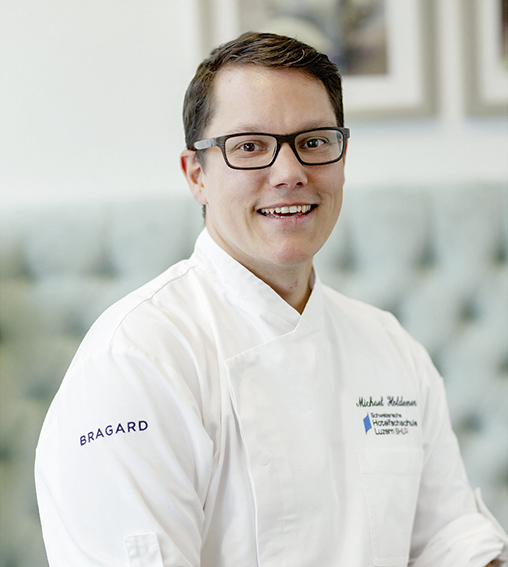 Während der Kochlehre in der Gemeinschaftsgastronomie machte Michael Holdener einen Austausch im «Kreuz» in Egerkingen/SO. Die Arbeit im À-la-carte-Restaurant war in Bezug auf seinen Beruf wie Liebe auf den zweiten Blick. Er wollte nichts anderes mehr. Seit 2016 arbeitet er für die SHL, bildet sich zum Eidg. Dipl. Küchenchef weiter und kocht in der Freizeit mediterrane und fernöstliche Gerichte für seine Familie und seine Freunde. Dazu darf guter Wein nicht fehlen.