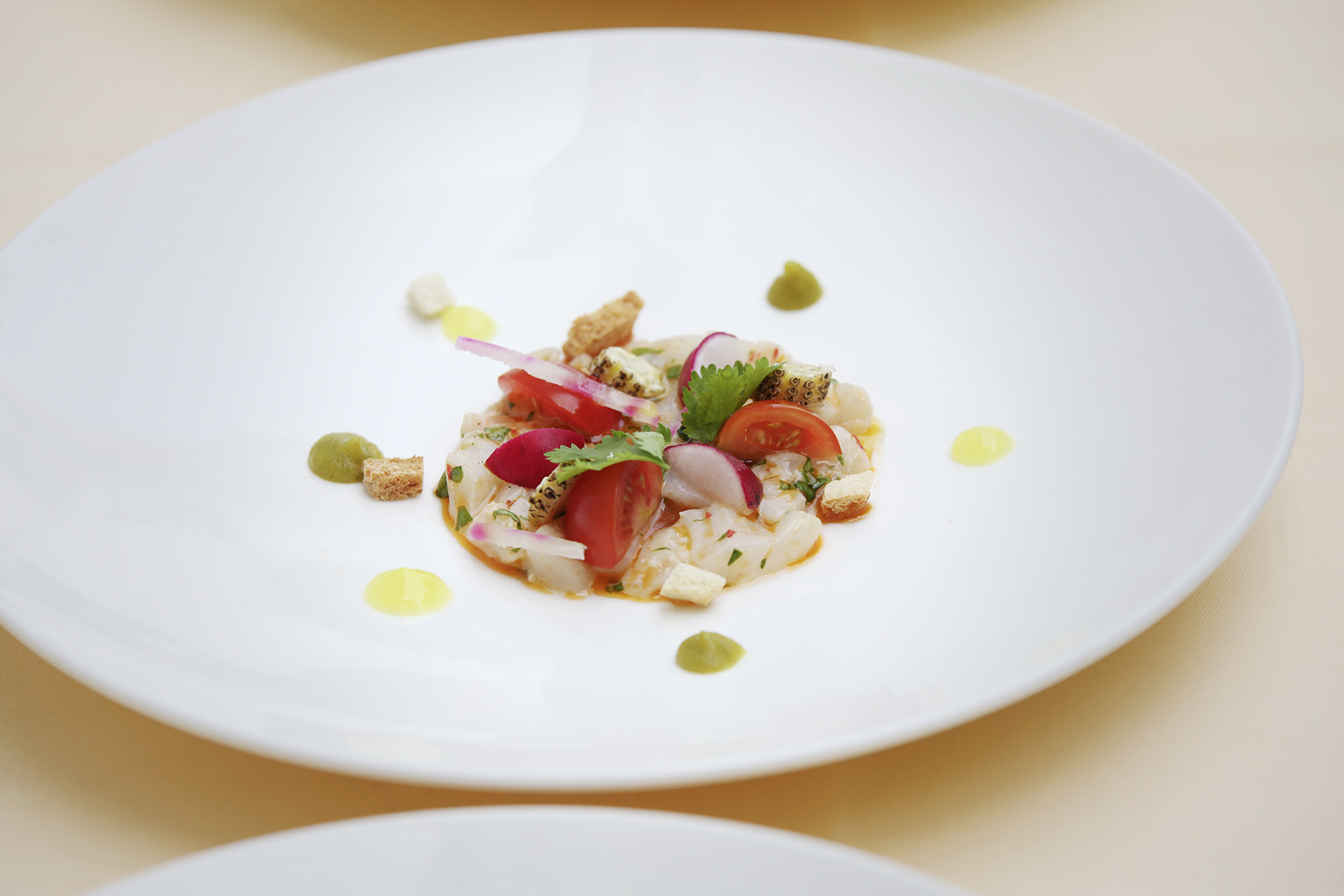 «Leche de Tigre» ist ein Nebenprodukt von Ceviche. Der beim Marinieren des Fischs entstandene Saft wird abgeschöpft und mit Fischstücken ergänzt. «Wir haben das Gericht als Hommage an die Küche von Anthony Vasquez aufgenommen», sagt Andy Zaugg. Vasquez hat im «La Mar» in Lima den 15. Rang der San Pellegrino’s 50 Best Restaurants erkocht. Seit 2015 ist er in der Cebichería La Mar von Buenos Aires tätig.