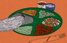 Edwin Paul Dhanapal Chelliahs Menü: Kefta d'orge perlé als Hauptspeise und Moelleux de Carotte aux épices als Dessert.