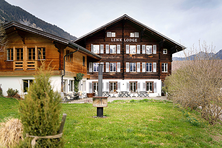 Die Lenk Lodge am Dorfrand ist ein kleines Refugium mit sechs Apartments sowie je einem Doppel- und einem Einzelzimmer. Die Grundmauern des Hauses gehen auf das Jahr 1921 zurück mit einem Anbau aus den 1970ern. «Unsere Vorgänger und bis heute Besitzer haben das Haus vor gut zehn Jahren gründlich renoviert und als Bed & Breakfast betrieben», erzählt Hotelier Raphael Simcic.