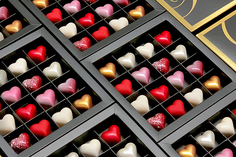 Die bunten Pralinen in Herzform von Rolf Mürner erfreuen sich neben dem Valentinstag auch an zahlreichen Anlässen während des Jahres grosser Beliebtheit. Lukas Bidinger