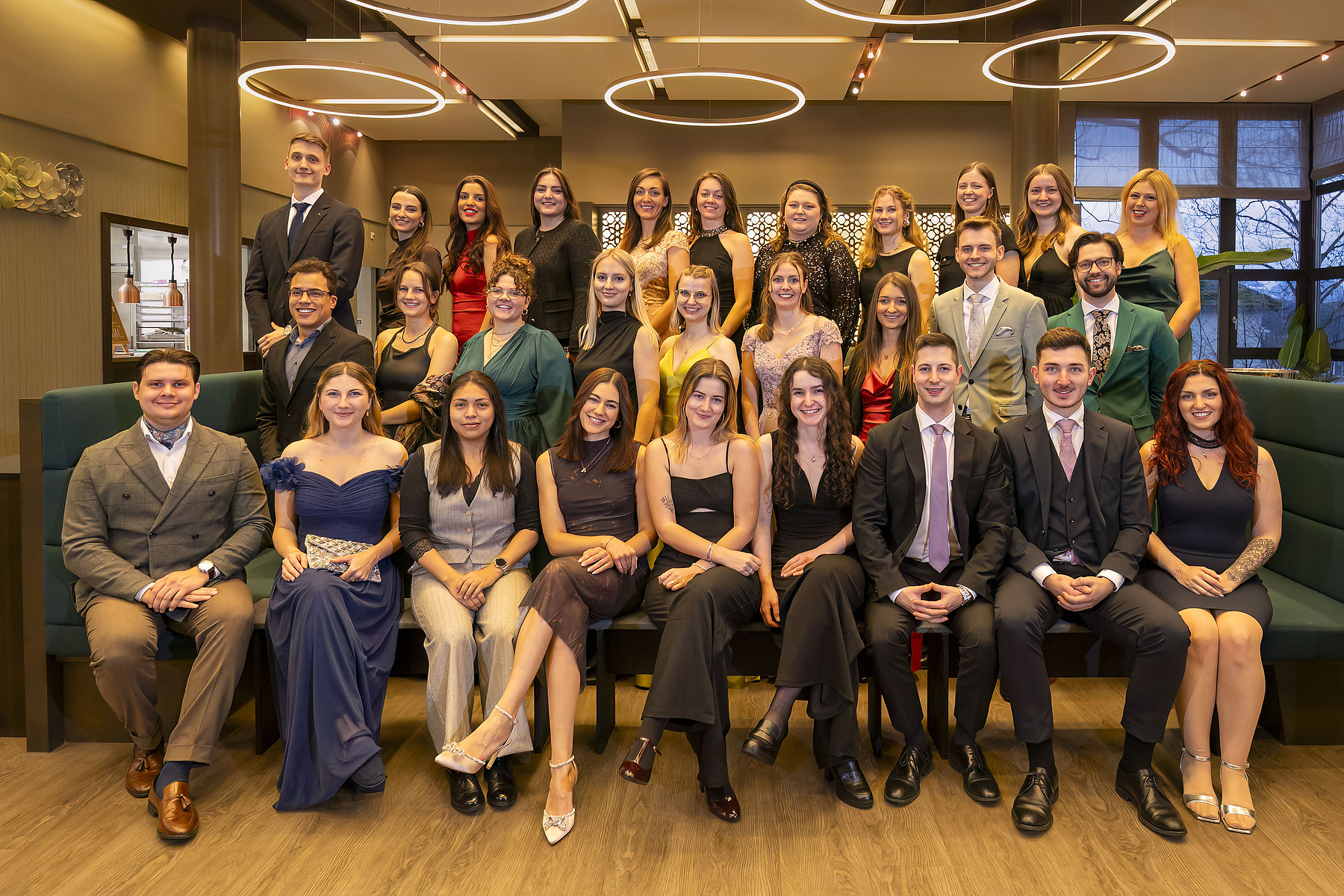 Mit der Übergabe der Diplome erreichte die Feier ihren Höhepunkt: Der Augenblick, auf den alle so lange hingearbeitet hatten, war endlich da. Unter Applaus nahmen die Absolventinnen und Absolventen ihre Auszeichnungen und die symbolischen Schlüssel zum Erfolg entgegen – ein sichtbares Zeichen für Durchhaltevermögen, Entwicklung und Zielstrebigkeit. Besonders geehrt wurden die drei Studierenden mit Bestnoten: Lukas Marxer (Rang 1, Ø 5.62), Laura Bühlmann (Rang 2, Ø 5.23) und Joel Grossmann (Rang 3, Ø 5.22). Sie erhielten für ihre ausserordentlichen schulischen Leistungen Preise von Relais & Châteaux. Christa Augsburger beendete schliesslich den offiziellen Teil mit den Worten: «Macht es gut, geniesst die kommenden hoffentlich etwas ruhigeren Tage, viel Glück und Erfolg.» Nach dem traditionellen Champagner-Einmarsch, musikalisch begleitet von Sänger Naemen, wurde auf die Hauptpersonen des Abends angestossen. Das anschliessende Dine Around auf dem Campus bot kulinarische Vielfalt und reichlich Gelegenheit für geselliges Beisammensein, um gemeinsam auf Vergangenes zurückzublicken – und mit Vorfreude den nächsten Schritt ins Auge zu fassen.