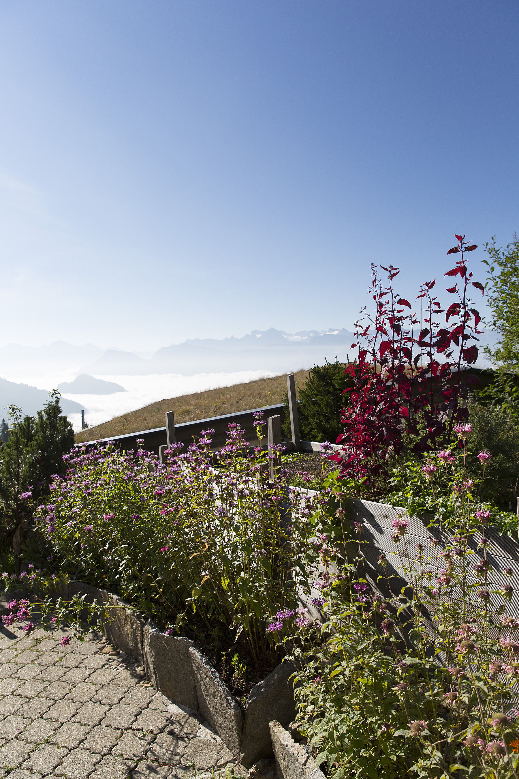 Rund 320 verschiedene Kräuter wachsen um das Kräuterhotel Edelweiss auf 1550 Metern über Meer in Rigi-Kaltbad. Sie gedeihen nicht nur in den Beeten rund um das Haus, sondern auch in Töpfen in allen Grössen am Rand der Terrasse mit der imposanten Aussicht. Derzeit blühen die Goldmelissen. Sie wachsen neben kretischem Oregano und argentinischer Minze. Selbst exotische Gewächse wie japanischer Wasabi und chinesischer Jasmintee wachsen dort.