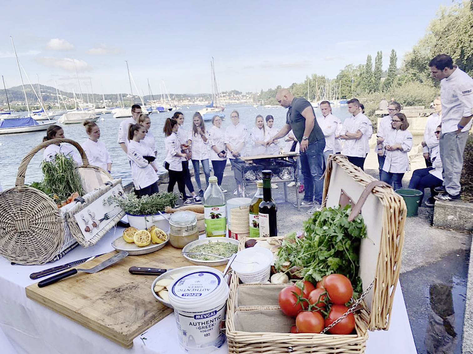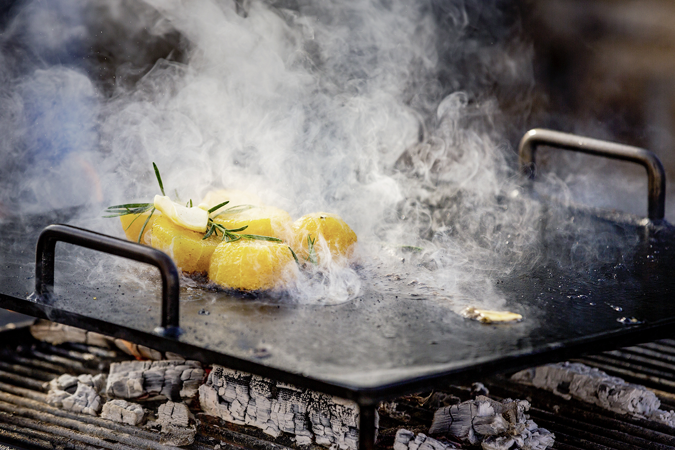 René Schudel ist beim Young Star der Fachexperte der ersten Stunde. Auch beim sechsten Mal drehte sich bei ihm alles um Feuer, Glut und Asche. Seinen Workshop begann er mit kurzweiliger Theorie: «Getrocknete Maiskolben und weiche Hölzer lassen sich leicht anzünden. Hartholz ergibt eine gute Glut.» Anfeuern mussten die Jungen nicht. An der Feuerstelle am See glühten bereits die Holzscheite. Und René Schudel hatte zahlreiche Zutaten vorbereitet. So duftete es nicht nur nach Rauch, sondern auch nach Knoblauchchips und grillierten Zitronen. Auf einer Stahlplatte karamellisierte er Quittenschnitze mit Butter und Zucker. Diese passen zu Glace genauso gut wie zu Käse. Auch Bananen und Crêpes mit «dulce de leche» sind ein Dessert, das sich für die Zubereitung auf dem Grill eignet. Steinpilze von der Grillplatte sind eine Delikatesse, und das Umami in etwas darübergestreutem Hartkäse verstärkt den Geschmack. Verdutzt schauten die Jungen, als René Schudel zwei Köpfe Blumenkohl aus der Glut holte. Mit Koriander-Petersilien-Sesamöl-Vinaigrette, Knoblauchchips und Sauerrahm waren diese ein Höhepunkt des Tages. In mundgerechte Portionen geteilt, hatten die jungen Berufsleute rasch die letzten Krümel aufgegessen.