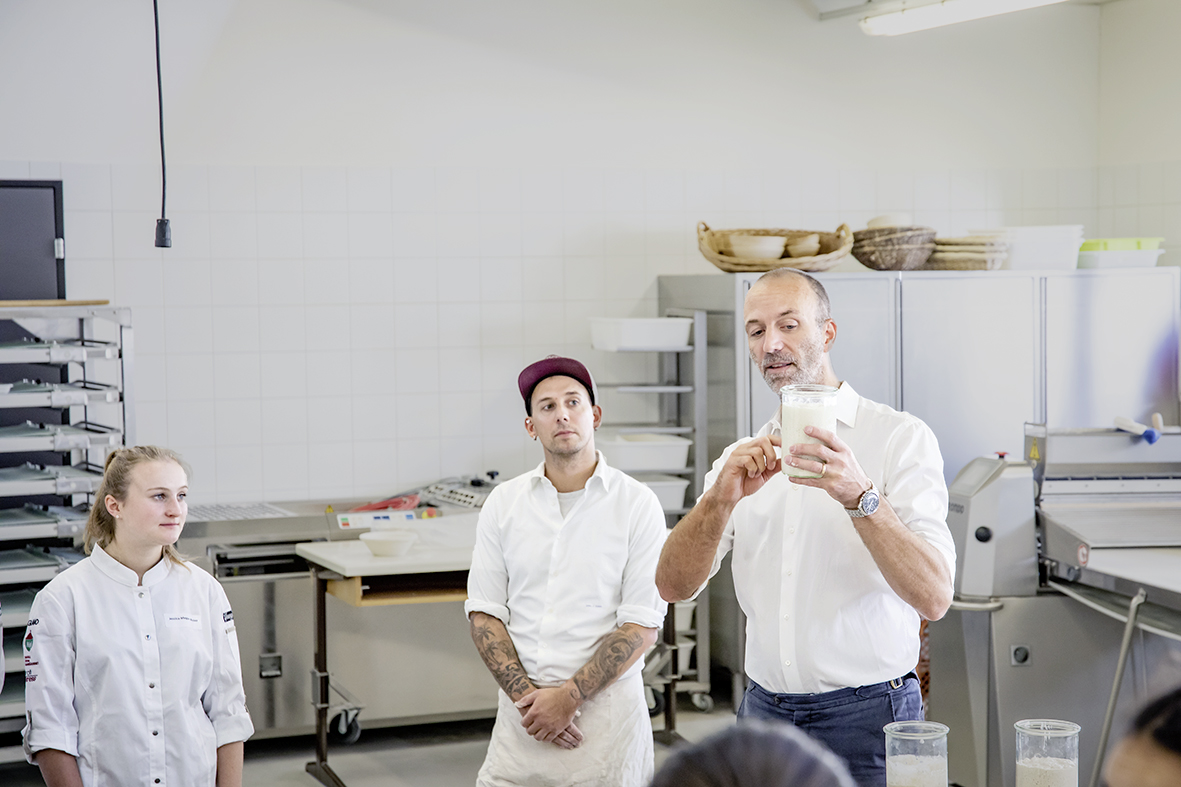 Die Voraussetzung für gute Produkte ist die Qualität der Zutaten. So kennt Jens Jung, der Gründer von John Baker, viele Produzenten seiner Rohstoffe persönlich. Er weiss, wie nachhaltig die Getreide, Mehle oder Samen, die er einkauft, hergestellt werden. In seinem Workshop zeigte Jens Jung den interessierten Teilnehmenden, wie er erfolgreich gutes, biologisches und nachhaltiges Brot bäckt. Während Jens Jung in der Richemont-Backstube über Hefezuchten und Sauerteig referierte, konnten die jungen Fachleute selber ein Brot formen und in den Ofen einschiessen. Auch erzählte er, wie mit etwas Mut und Unternehmergeist eine gute Idee erst zu einem Start-up, dann zu einem florierenden Unternehmen wird. Bei John Baker hat Jens Jung dafür in allen Bereichen mit Profis zusammengearbeitet. So auch im Bereich Marketing. Selbst frisches Brot – fast rund um die Uhr – muss online beworben werden. Jens Jungs Unternehmen floriert. Bei John Baker geht es ums Handwerk, um Sauerteig und um eine lange Teigführung. Aber nicht nur. «Die Kunden fiebern darauf, Enthusiasmus zu erleben», sagte der Bäcker aus Leidenschaft. Dieser Enthusiasmus gehöre zur Brotkompetenz des Bäckergewerbes.