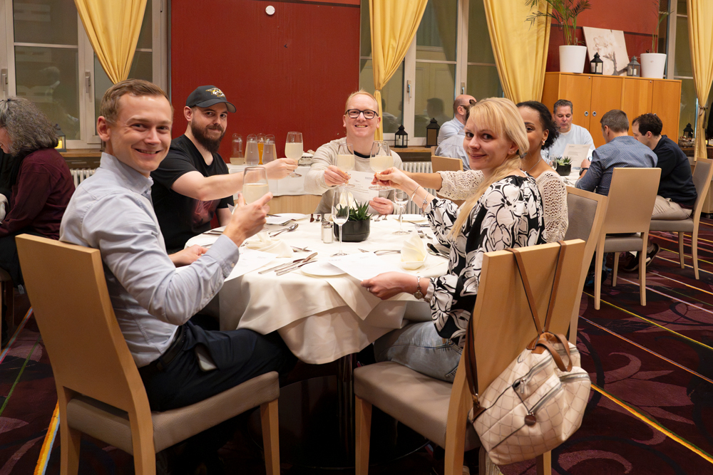 Anschliessend wurden die Teilnehmenden von Shaun Leonard empfangen und mit einem feinen Apéro begrüsst. Während einer ausführlichen Besichtigung erhielten die Stammtischfreunde spannende Einblicke in die Ausbildungsstätte und deren vielfältige Tätigkeiten. Die Präsentation war informativ und inspirierend zugleich. Ein besonderer Höhepunkt des Abends war das anschliessende Abendessen im ehrwürdigen Speisesaal des ehemaligen Hotel Union. Dort durften die Gäste ein exzellentes Drei-Gang-Menü geniessen, das von Studierenden zubereitet und serviert wurde. Die hohe Qualität und Professionalität beeindruckten alle Anwesenden.
