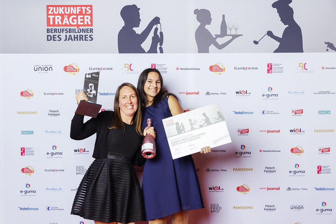 Marion Riedel-Hirschmann selbst hat ihre eigene Lehre mit der Note 5,9 abgeschlossen. Nun wurde sie für ihre Ausbildner-qualitäten mit dem Titel «Zukunftsträger 2022» ausgezeichnet. Von ihrer Lernenden Beatriz Silva wurde Marion Riedel-Hirschmann für den Preis nominiert, weil sie immer ein offenes Ohr für ihre Lernenden hat, diese durch die verschiedensten Lebens-situationen begleitet, mit ihnen ihre grosse Liebe zum Serviceberuf und zur Gastronomie im Allgemeinen teilt und einfach ein tolles Vorbild ist.