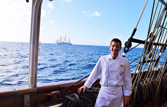 Raphael Füger, der gelernte Koch und Konditor-Confiseur arbeitet seit knapp vier Monaten auf dem Segelkreuzfahrtschiff Sea Cloud, das durch die Karibik schippert.