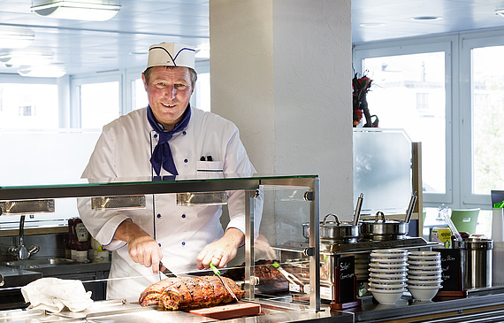Bernhard Schachtner, Küchenchef im Spital Visp, und sein Team verwöhnen Patienten, Mitarbeitende und Gäste mit ihrer gutbürgerlichen Küche. Ein Advertorial.