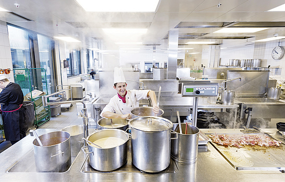 In den Grossküchen der Berner Inselgruppe arbeiten die Lernenden oft an einzelnen Komponenten. Mit einem Wettbewerb, der zur Ausbildung gehört, kreieren und berechnen sie ihr eigenes Menü.
