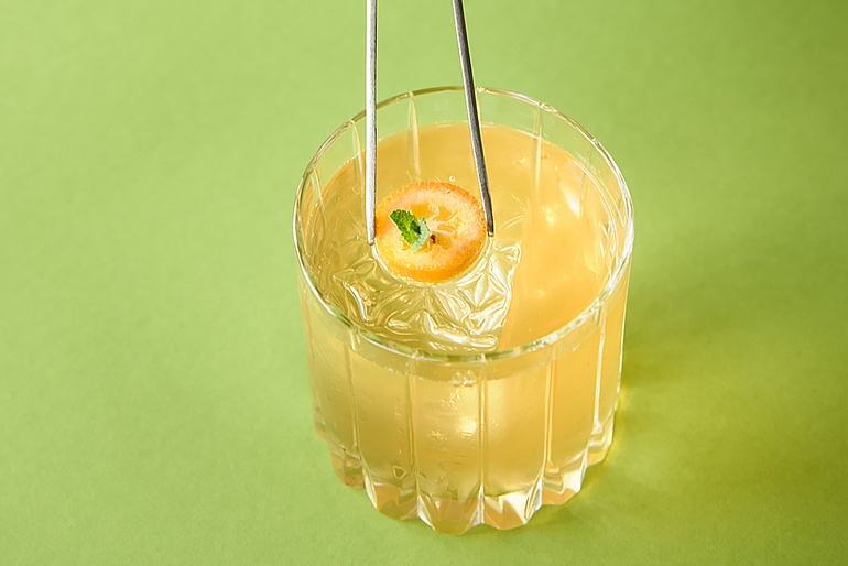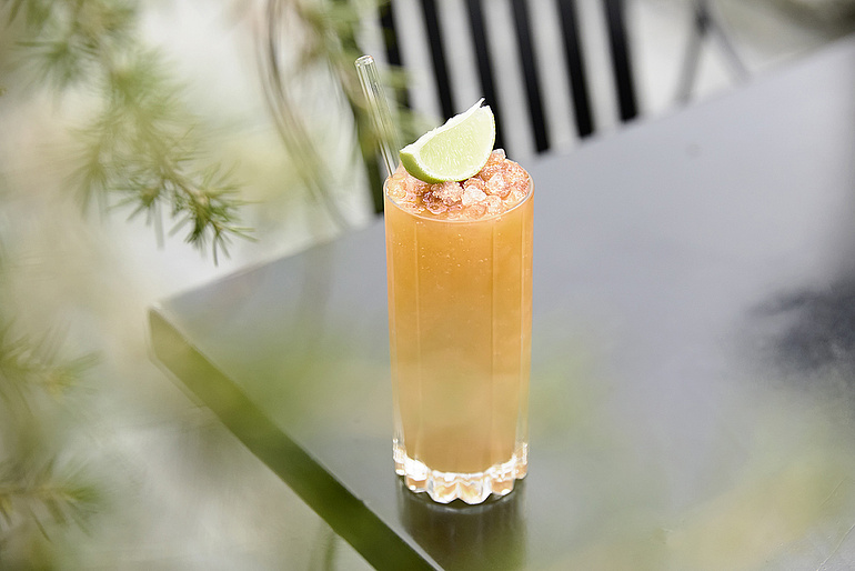 Zu den Bestsellern auf der Sommerkarte gehört der Signature-Drink mit dem klingenden Namen Nemesis. Der Cocktail ist Tiki-inspiriert und kombiniert zwei Sorten Rum mit Mangopüree, Limette und Yuzu-Zimt-Cordial. «In seiner ursprünglichen Variante war dieser Drink sehr heimtückisch», erzählt der Barchef. «Man konnte viel davon trinken, ohne seine Stärke zu merken.» Damals kam auch der Name Nemesis auf. Die Version, die nun auf der Karte steht, wird allerdings mit Crushed Ice geshakt und serviert, was ihn etwas entschärft. Am Schluss gibt Michael Müller noch ein paar Tropfen Bitter auf den Drink, um ihm etwas mehr Komplexität zu verleihen. Die knallige orange Farbe von «Nemesis» weckt Sommergefühle. «Wir möchten wieder etwas vom Minimalismustrend wegkommen, der die Barszene in den letzten Jahren geprägt hat», sagt Müller. «Es darf auch mal farbenfroh sein und eine etwas längere Zutatenliste haben.» Der Barchef nutzt gerne Fruchtkomponenten, setzt auf hausgemachte Shrubs und Cordials. «Ich arbeite auch sehr gerne und häufig mit dem Küchenteam zusammen. Sie geben mir Tipps für Geschmackskombinationen und helfen mir, wenn ich eine ihrer Maschinen verwenden möchte.»