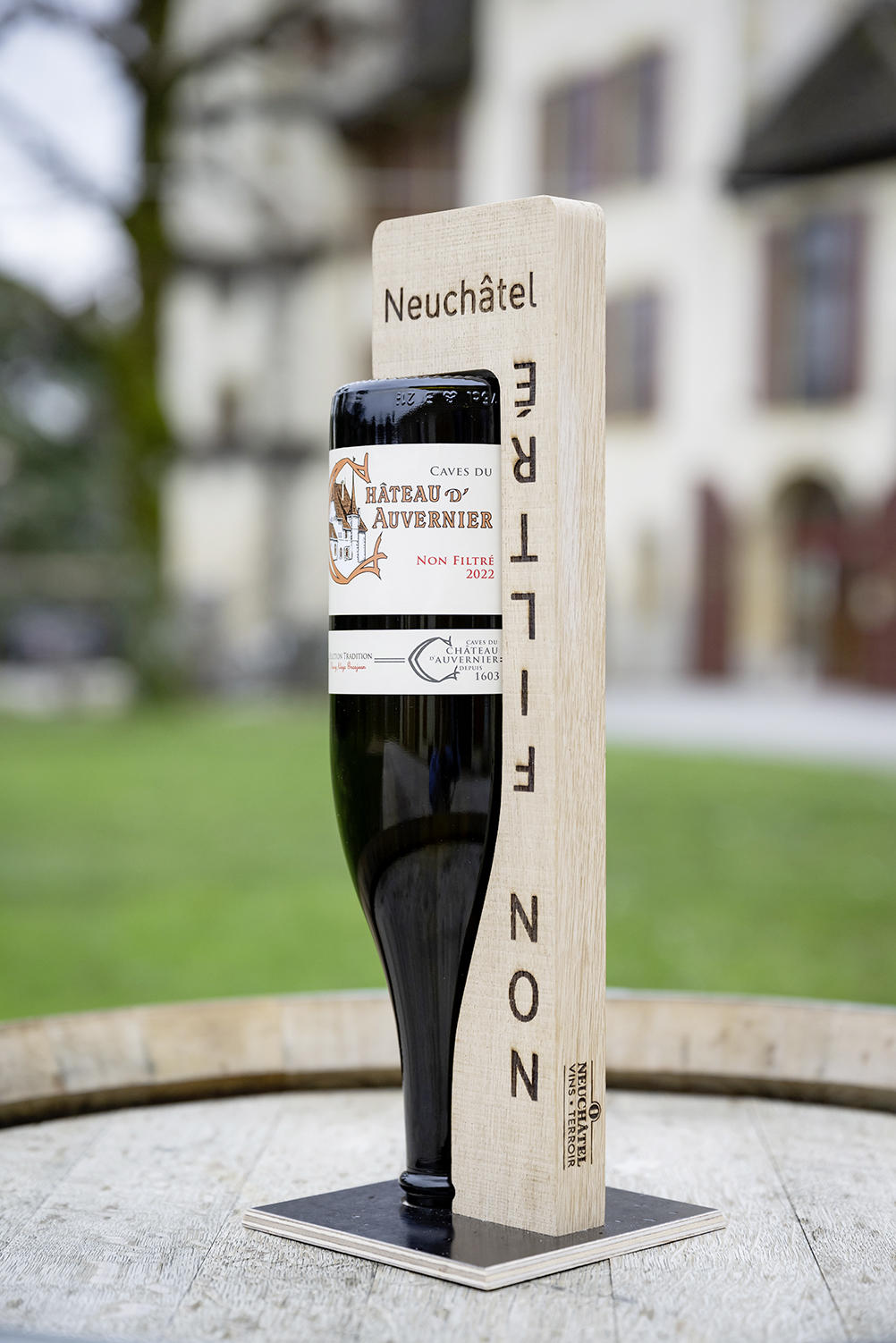 Die schwebende Weinhefe verleiht der Neuenburger Spezialität ihren unverwechselbaren Charakter. Um dies zu unterstreichen, haben die Winzer erstmals zu einem Trick gegriffen. Sie haben die Etiketten bewusst verkehrt auf die Non-Filtré-Flaschen geklebt. Diese Weltpremiere soll die Weingeniesser daran erinnern, die Flasche vor dem Öffnen kurz auf den Kopf zu stellen.