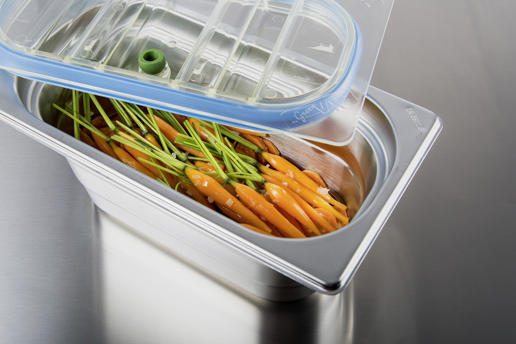Die Idee, die Produktion der Speisen vom Service zu entkoppeln, verfolgt die Firma Hugentobler Schweizer Kochsysteme AG seit Jahrzehnten. «Um die Schwächen vom System Cook & Chill zu umgehen, wie zum Beispiel das Austrocknen der Speisen oder die oberflächliche Würzung, haben wir das System ‹freeze ’n’ go›, wie wir es nennen, weiterentwickelt», erläutert Markus Steiner. Dabei würden die Speisen fixfertig zubereitet und abgeschmeckt, dann garheiss in Vakuumschalen abgefüllt, mit Deckel verschlossen und sogleich auf rund 2 °C runtergekühlt. Anschliessend werde in der Schale ein volles Vakuum erstellt. In diesem luftleeren Raum öffnen sich die Poren der Speisen, womit der Gewürzgeschmack sukzessive intensiver in die Speisen eindringt. Der Experte ergänzt: «Die Haltbarkeit erhöht sich gegenüber vier Tagen bei Cook & Chill auf zehn Tage. Darüber hinaus bleiben die Speisen frei von fremden Bakterien und behalten Aussenstruktur, Farbe, Vitamine und Geschmack.» Dieser sei gemäss Steiner nach einigen Tagen im Vakuum sogar noch besser als frisch gekocht und serviert.+
