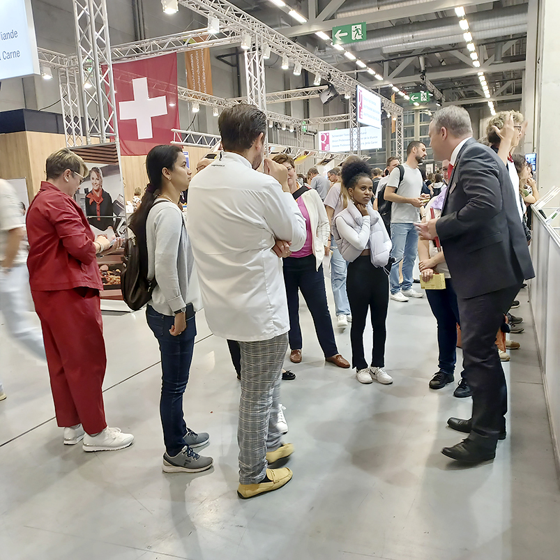 Die Führung leitete Gilbert Ernst, Eventkoordinator der Swiss Skills der «Berufe Hotelgastro». Er verriet unter anderem, dass der Stand 700 Quadratmeter Fläche betrug und 65 Mitarbeitende am Stand mitwirkten. Den Anlass liessen die Teilnehmenden beim Apéro ausklingen.