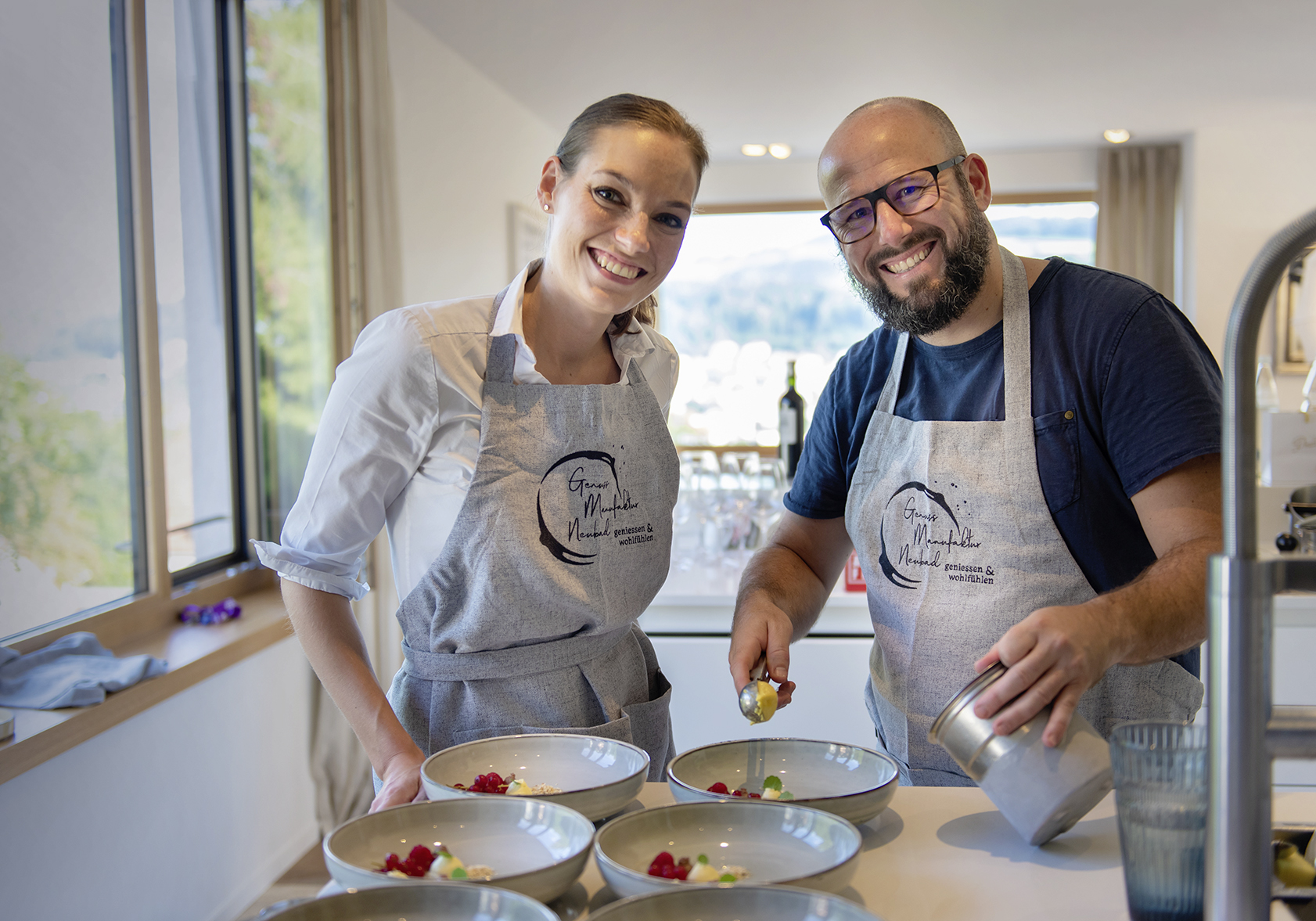 Natalie Vladani hat die Fachmittelschule besucht, als Flight Attendant gearbeitet und später die Tourismusfachschule abgeschlossen. Kennengelernt haben sich die beiden im Schloss Wartensee, wo sie an diversen Stationen tätig war. «Danach arbeitete ich noch einige Zeit im Hotel Bären in Gonten/AI, bevor ich im ‹Neubädli› anfing.»