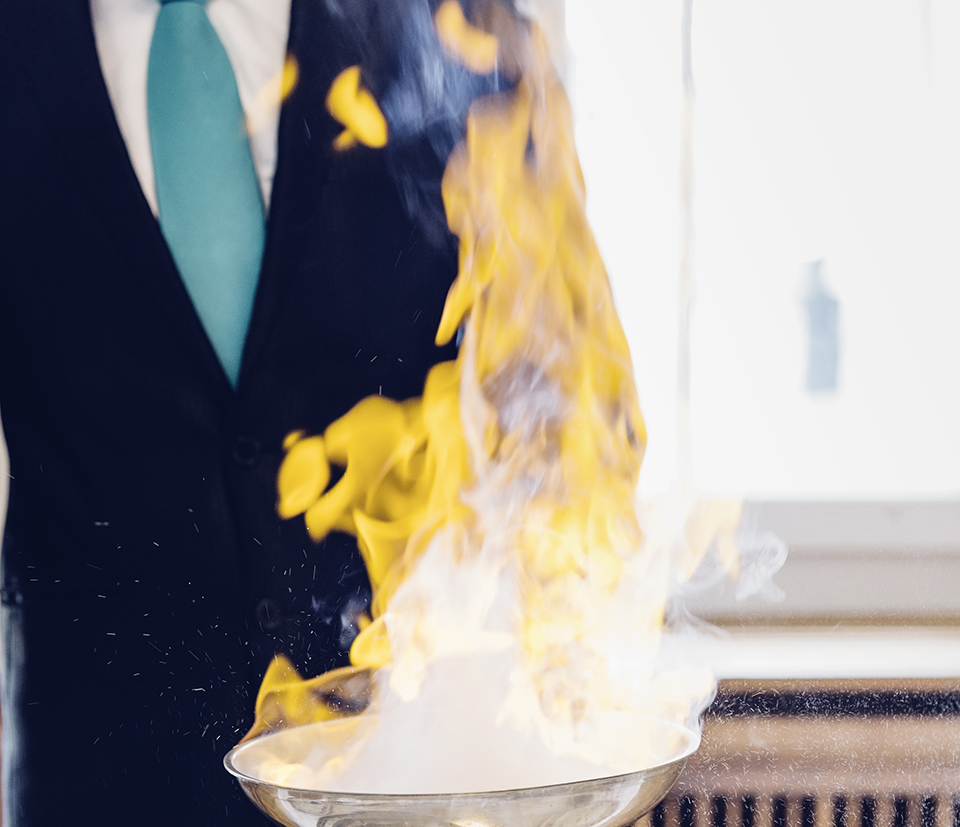 «Lorsque l’on flambe, le plus important est de garder son calme et d’être patient. La précipitation peut engendrer des situations dangereuses», souligne la spécialiste. C’est pourquoi la mise en place est cruciale. Tout doit être disposé de manière à ce que l’on ne doive ni passer sa main au-dessus du feu, ni s’éloigner du réchaud. Cette dernière règle est une obligation: tant que la flamme brûle, on reste sur place.