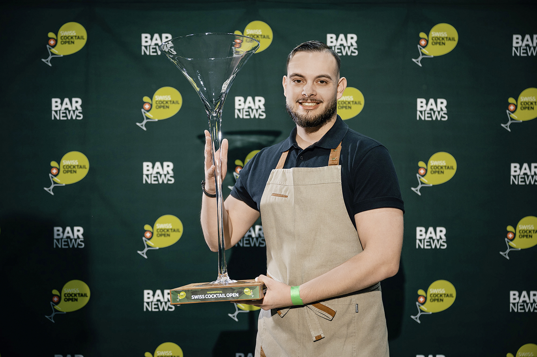 Barkeeper Valentin Aleksandrowicz aus dem «Njørden» in Aubonne/VD setzt sich im Finale des Swiss Cocktail Open gegen 24 Konkurrenten durch.