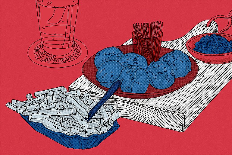 Ein Beispiel ist die Rijsttafel, eine niederländische Erfindung in Form eines Buffets während der Kolonialzeit, bei der indonesische Gerichte mit Reis serviert werden. Typisch sind aber auch Gerichte aus anderen Ländern wie etwa Bitterballen, die aus Frankreich importiert wurden. «Die Holländer mögen generell Frittiertes wie Bitterballen», so Yuri Kampstra. Dabei handelt es sich um eine kleine, rundliche Fleischkrokette, paniert und knusprig gebraten. Eine zweite, längliche Krokette ist die Frikandel, für die eine Fleischmasse in Wurstform gebrüht und anschliessend frittiert wird. Ein weiteres Beispiel ist Kibbeling, ein in Teig frittierter Fischsnack, entwickelt aus der langen Tradition der Fischverarbeitung. Oder Hering, auch als «holländischer Matjes» bekannt. «Abends wird mein Lokal zur Bar. Da passen solche Snacks gut zu Bier», so Yuri Kampstra. Die Niederlande verfügen über eine lange Bierbrautradition. Es gibt überwiegend helle Pils- und Lagerbiere, aber auch dunkle Klosterbiere, die den belgischen Bieren verwandt sind.