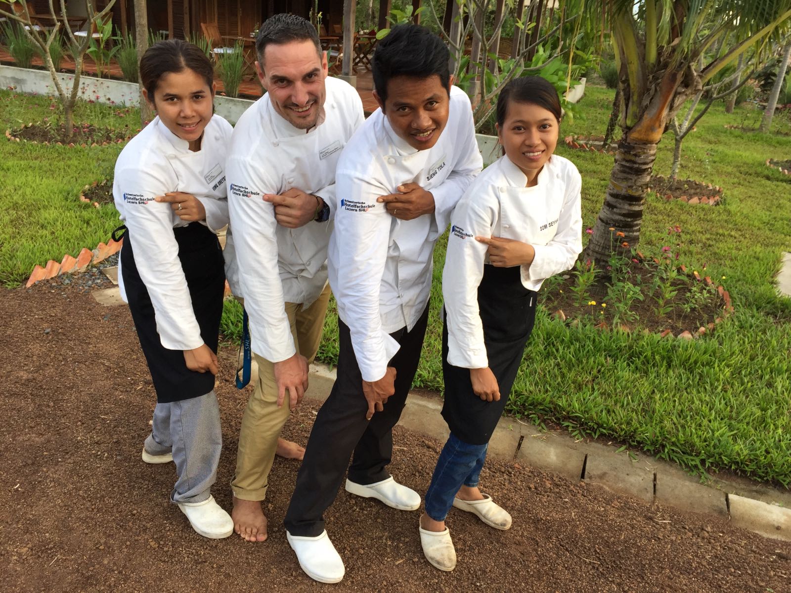 Da mein Küchenteam in rund zwei Wochen in einer professionellen Küche arbeiten darf, möchte ich die Corporate Identity sicherstellen. Dafür habe ich dank der Spende von Bart Ferwerda und SHL Asien neue Küchenuniformen anfertigen lassen. Nach gefühlten 50 Telefonaten mit dem Schneider und nach einer Fehllieferung sowie rund vier Wochen Wartezeit haben wir auch das geschafft.
