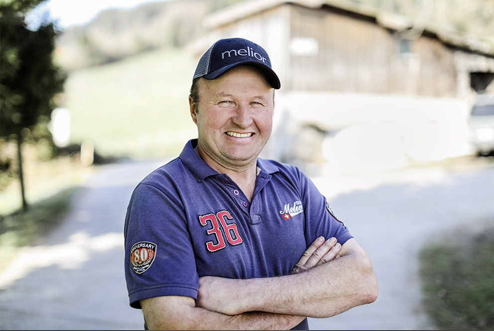 Der Hof von Richard Fragnière liegt auf 915 Meter über Meer an einem nach Süden ausgerichteten Hang des Mont Gibloux in Gumefens/FR. Vor ihm liegen saftige Wiesen und der Greyerzersee. Im Hintergrund bieten die Alpen mit dem 2002 Meter hohen Moléson eine majestätische Kulisse. Dort ist die Heimat von Le Gruyère AOP und Vacherin Fribourgeois AOP. Zur Herstellung dieser Käse braucht es grosse Mengen Milch und Landwirte, die Milchkühe halten. Als junger Landwirt, damals noch bei seinem Vater angestellt, entschied sich Richard Fragnière 2001, den Betrieb auf Bio umzustellen. Heute besitzt er 65 Hektaren Land, 80 Holsteiner Milchkühe sowie eine Herde Rinder der Fleischrasse Limousin.