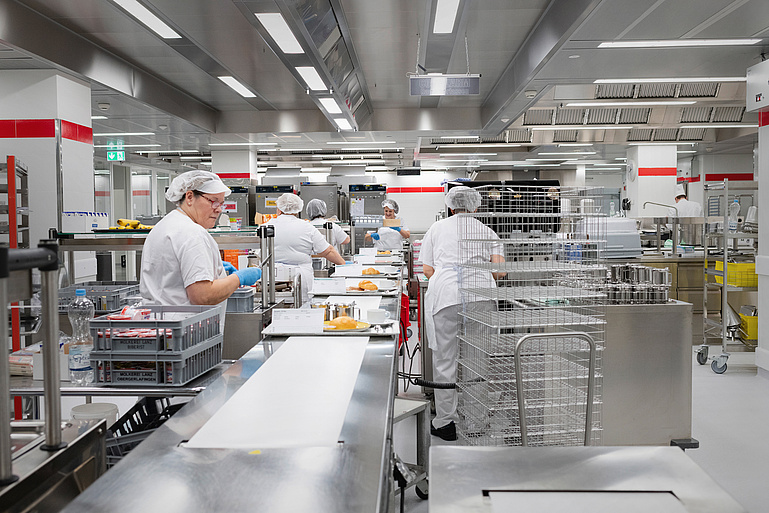 Die rund 140 Mitarbeitenden der Gastronomie stellen jeden Tag Mahlzeiten für rund 900 Patienten und 1200 Mitarbeitende her. Dazu kommen 100 Kita- und 50 Spitex-Mahlzeiten sowie 650 Cateringanlässe im Jahr.