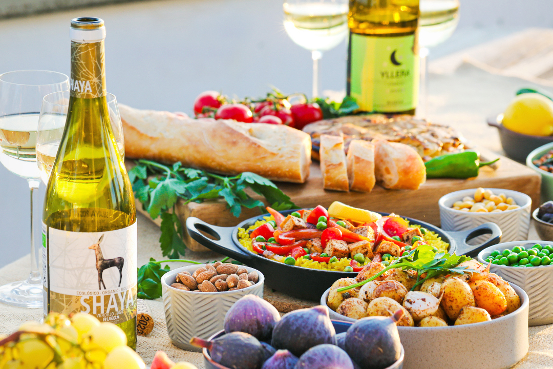 Gemüsegerichte wie eine vegetarische Paella, Fisch und Meeresfrüchte sowie helles Fleisch verlangen nach kräftigen Weinen. Dazu zählen die konzentrierten Crus von alten Reben. Mit dem Aufwirbeln der Feinhefen und einem Ausbau in Betoneiern gewinnen sie an Fülle. Beste Vertreter sind der Montepedroso Enoteca und der Chapirete Prefiloxérico, ein Gran Vino de Rueda.